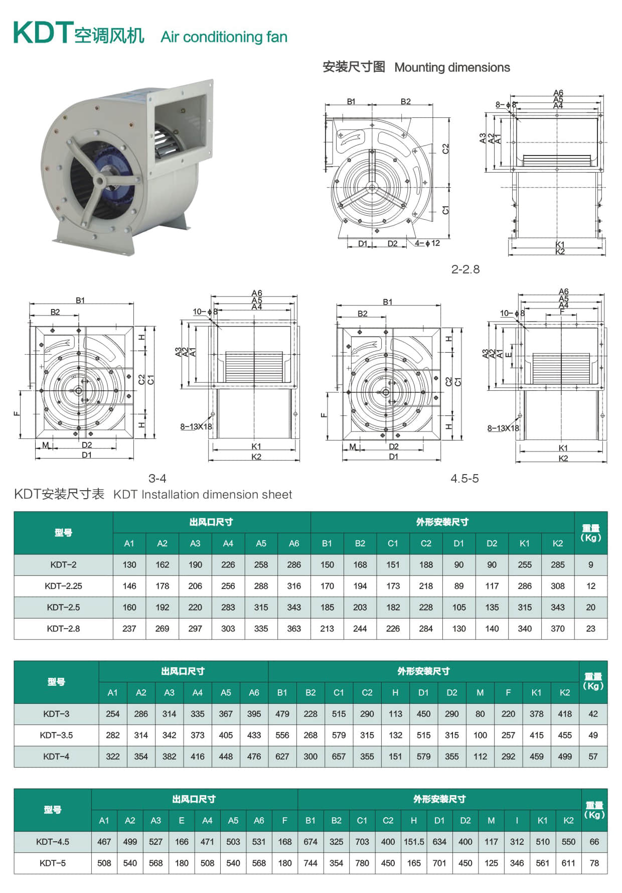 * KDT系列风机为单相异步电容运转和三相异步运转两种。广泛用于工矿企业、宾馆、大型商场等通风换气,中央空调机组、净化空调、紧凑型风机盘管机组的配套。