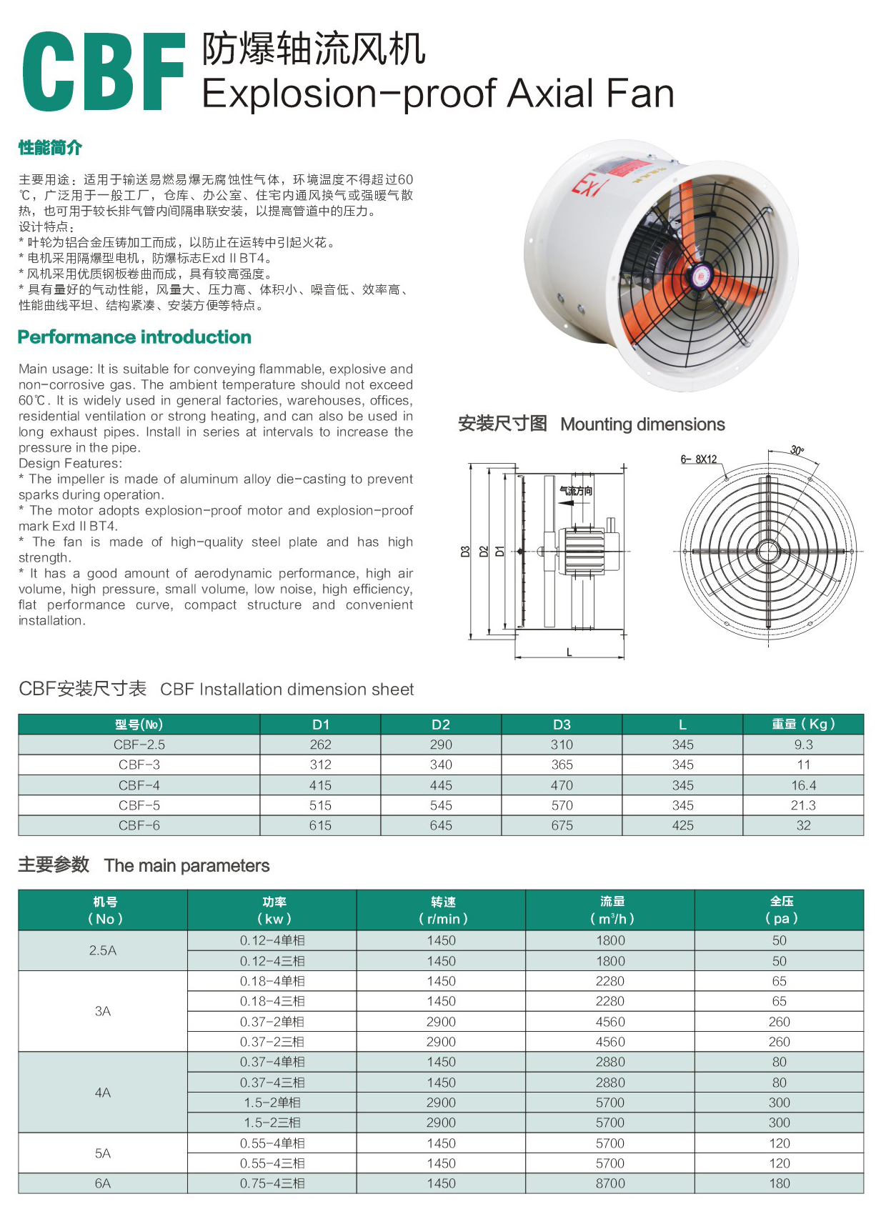 * 具有量好的气动性能,风量大、压カ高、体积小、噪音低、效率高、性能曲线平坦、结构紧凑、安装方便等特点。