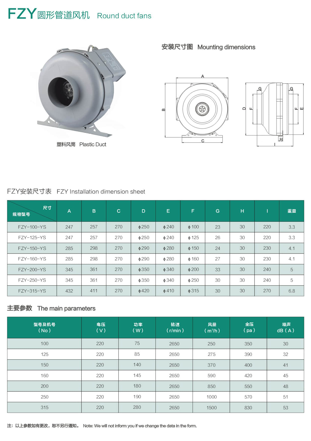 * FZY系列轴流风机为外转子电机,该系列外转子电机具有结构紧凑、安装方便、运行可靠、噪音低、节能高效等特点。