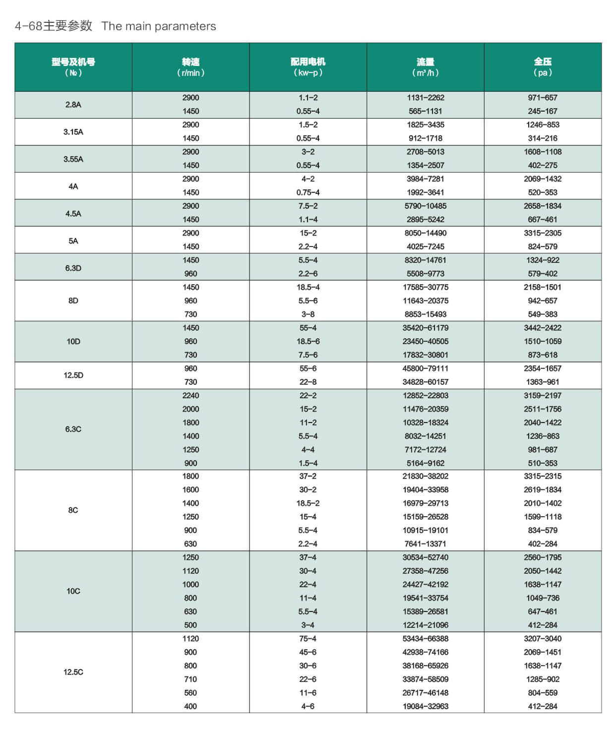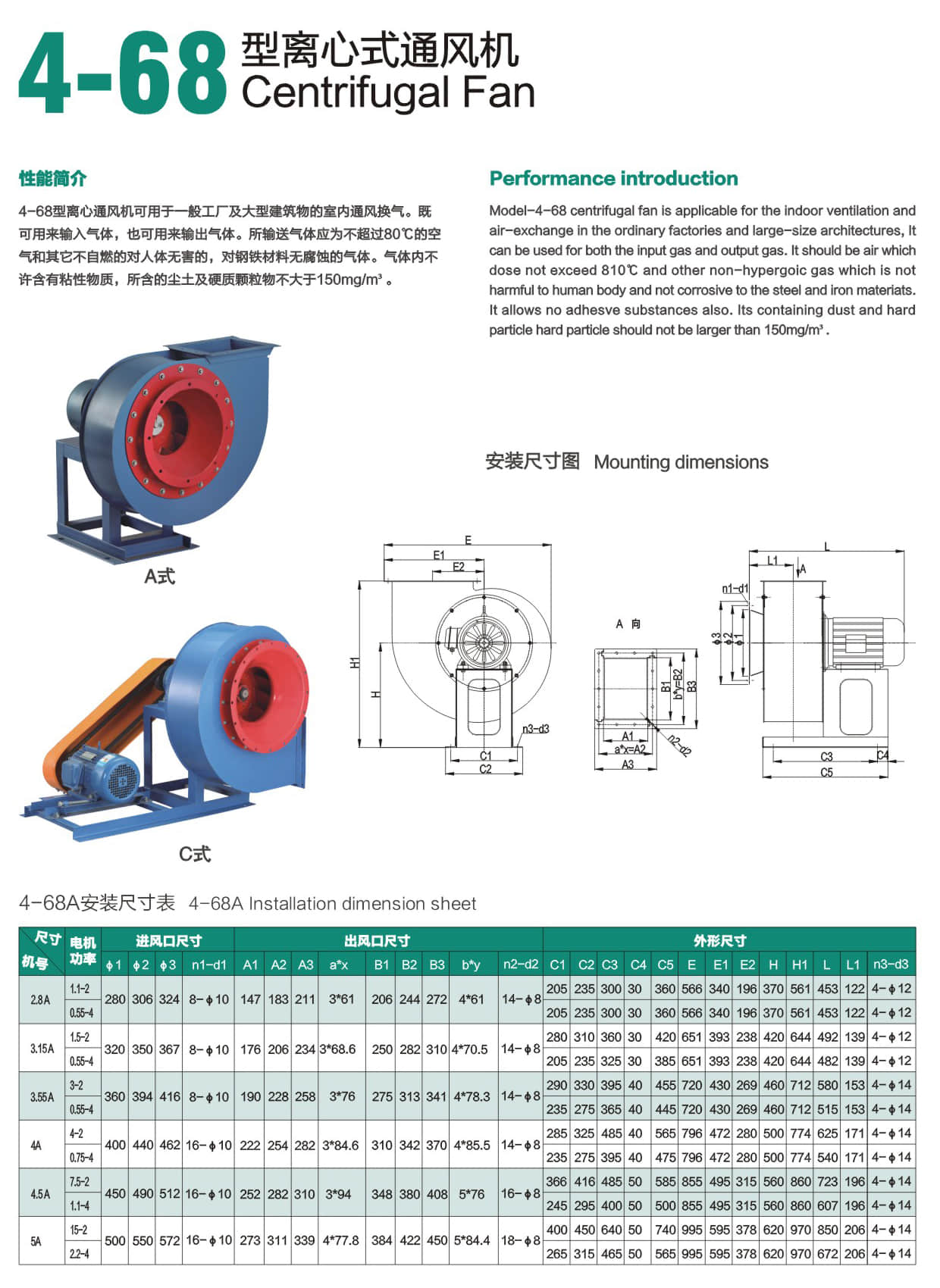 * 4-68型离心通风机可用于一般工厂及大型建筑物的室内通风换气。既可用来输入气体,也可用来输出气体。所输送气体应为不超过80℃的空气和其它不自燃的对人体无害的,对钢铁材料无腐蚀的气体。气体内不许含有粘性物质,所含的尘土及硬质颗粒物不大于150mg/m³。