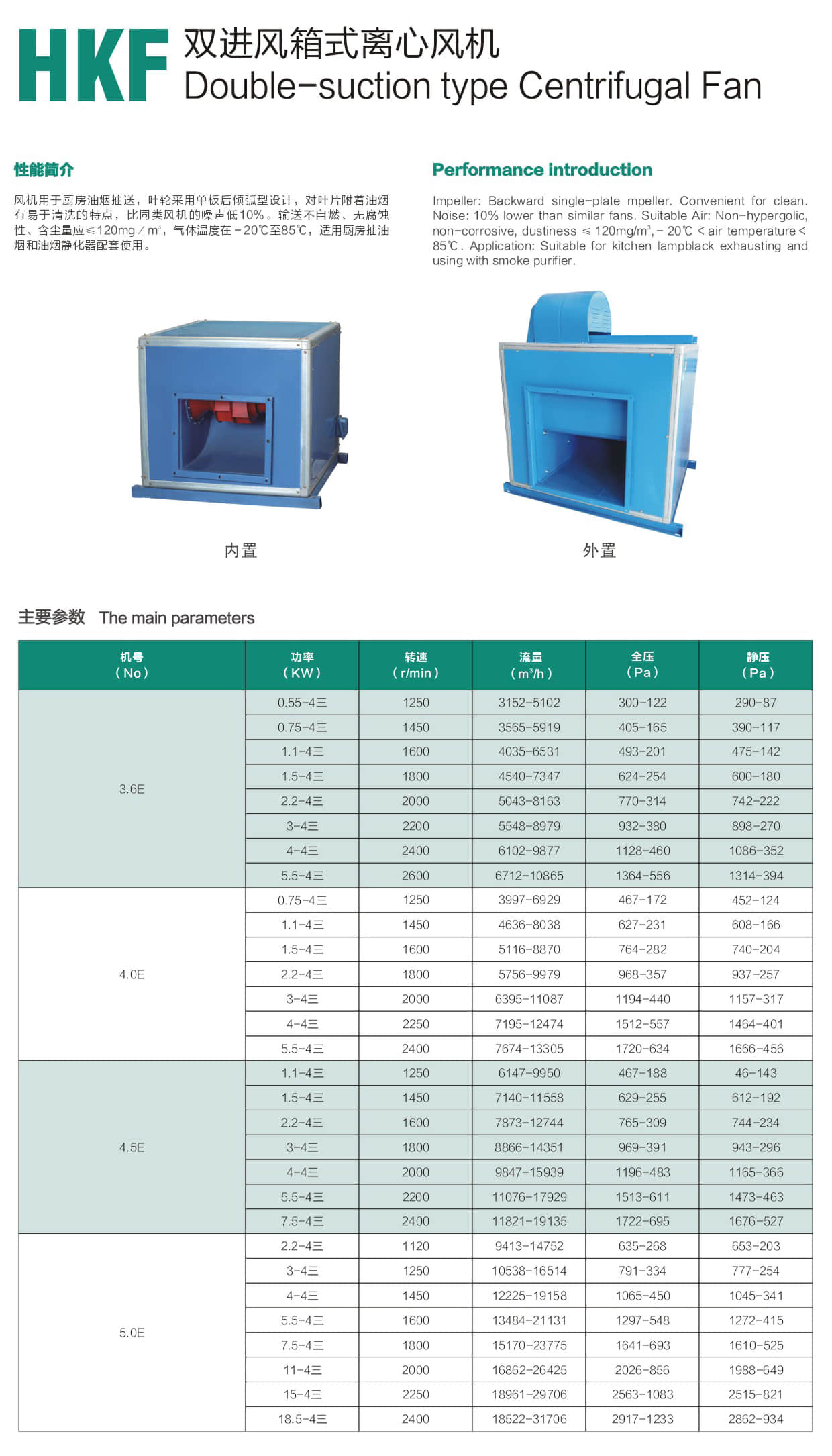 * 风机用于厨房油烟抽送,叶轮采用单板后倾弧型设计,对叶片附着油烟有易于清洗的特点,比同类风机的噪声低10%。输送不自燃、无腐蚀性、含尘量应≤120mg/m³,气体温度在-20℃至85℃,适用厨房抽油烟和油烟静化器配套使用。